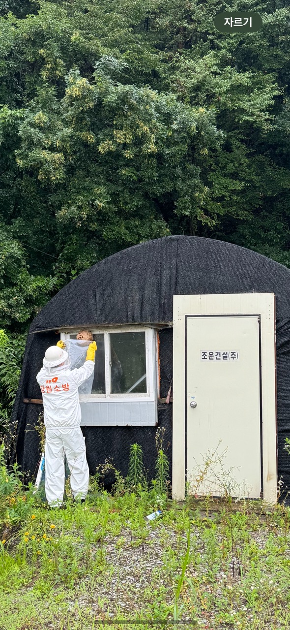 말씀하신 장소는 원주시 지정면 월송리로 관할 센터인 기업119안전센터 직원들이 7월 18일 출동하여 안전하게 제거하였습니다. 감사합니다.