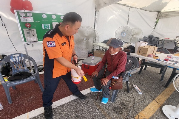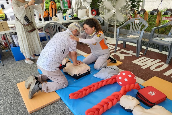 이번 안전체험장은 ▲소소완(소화기, 소화전, 완강기) 및 화재대피방법 교육 ▲주택용 소방시설 설치 촉진 및 소방안전교육 홍보 ▲개인안전장비 착용 체험 ▲포토존 운영 ▲심폐소생술 체험 및 자동심장충격기 사용법 체험 등으로 진행했으며, 특히 이번 체험장에서는 완강기 사용법과 전기차 화재 대처요령 등을 중점으로 교육했다.