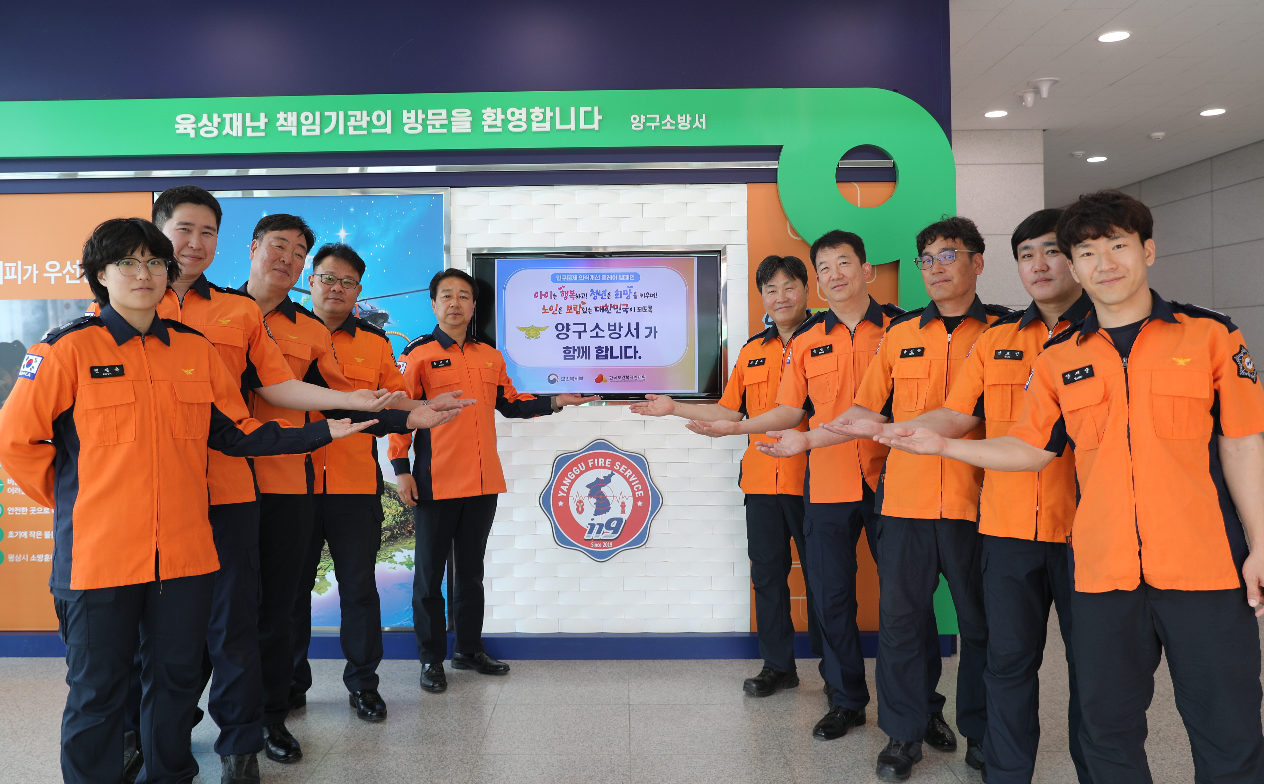 양구소방서(서장 용석진)는 7일‘인구문제 인식개선 릴레이 캠페인’에 참여해 지역 사회의 인구 감소와 고령화 문제에 대한 관심을 촉구했다.