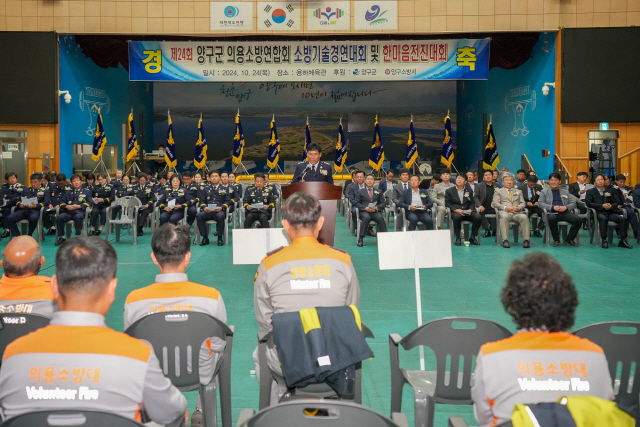 ▲ 제24회 양구군 의용소방연합회 소방기술경연대회 및 한마음전진대회가 24일 용하체육관에서 서흥원 양구군수, 정창수 양구군의회 의장, 김왕규 도의원, 18개시·군 의용소방연합회 대장 및 기관, 단체장들이 참석한 가운데 열렸다.