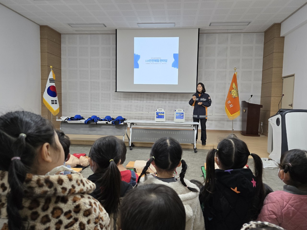 교육은 ▲화재안전 교육(소화기 사용법, 농연 텐트를 활용한 화재 발생 시 대처요령 등) ▲심폐소생술(심폐소생술 및 자동심장충격기 사용 방법) ▲기도 폐쇄 시 필요한 하임리히법 등 응급처치법 ▲완강기 사용 방법 및 주의 사항 ▲소방차 탑승 및 어린이 방화복 착용 등 체험형 프로그램으로 진행됐다.