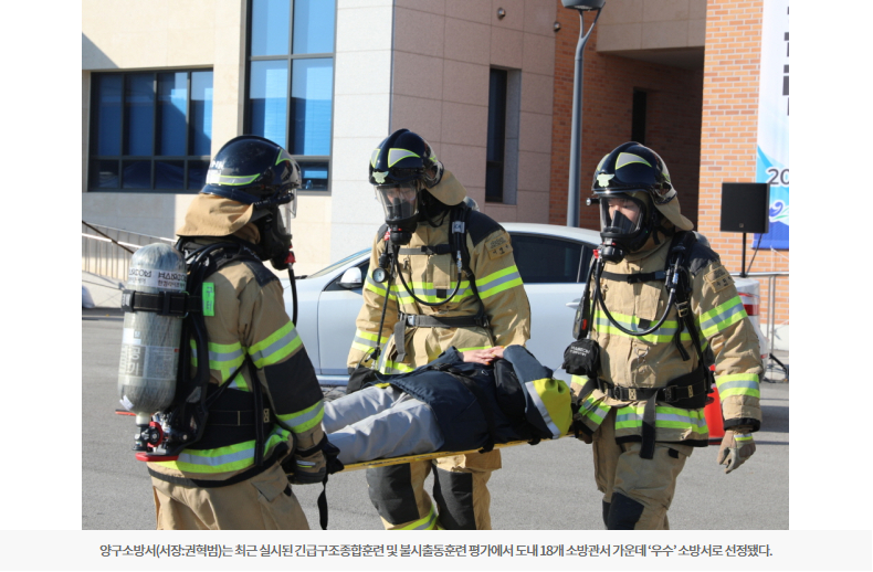 [강원일보] 양구소방서, 긴급구조종합훈련 등 ‘우수’ 소방서 선정