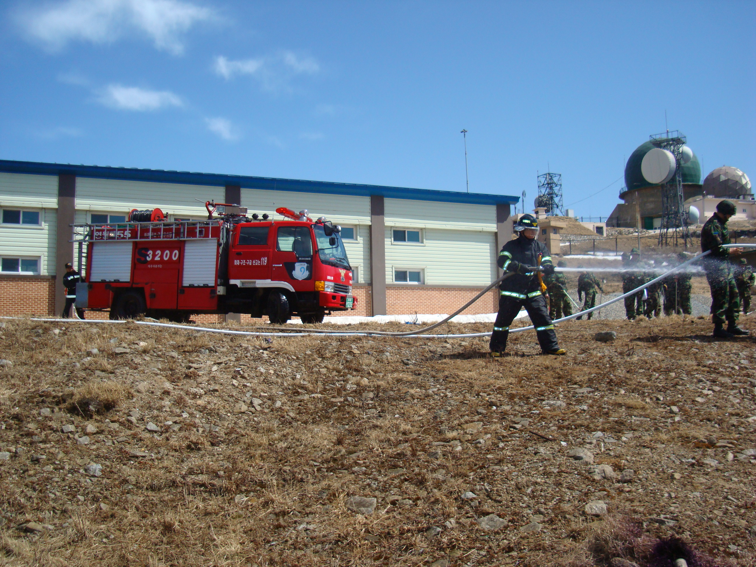 이번 훈련은 군부대의 요청으로 이루어졌으며, 대관령119안전센터에서는 소방인력(소방장 박병만, 소방교 이윤재)과 펌프차(대관령펌프1착대)를 이용하여 훈련목적을 성공적으로 이룰수 있도록 도왔다.