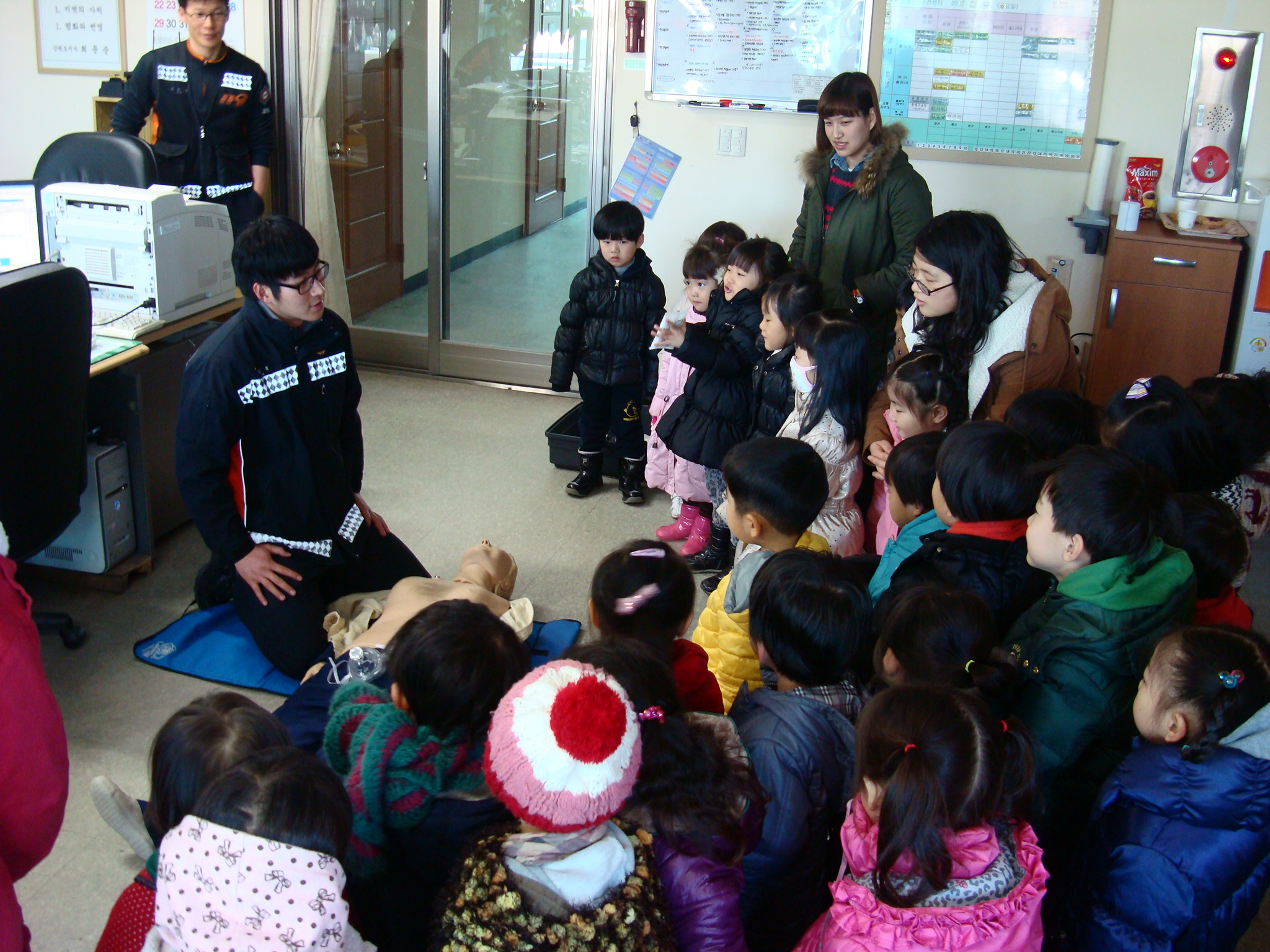 영월소방서(서장 김남백) 봉평119안전센터는 관내 초록어린이집 교사 및 원생 62명을 대상으로 1.11일 체험식 소방안전교육을 실시했다.이번 체험교육은 화재,구조,구급시 119신고 요령과 불장난금지 교육, 화재시 대피요령 및 소화기 사용요령 안내,교사 심폐소생술 교육실시,소방차 탑승을 실시했다.