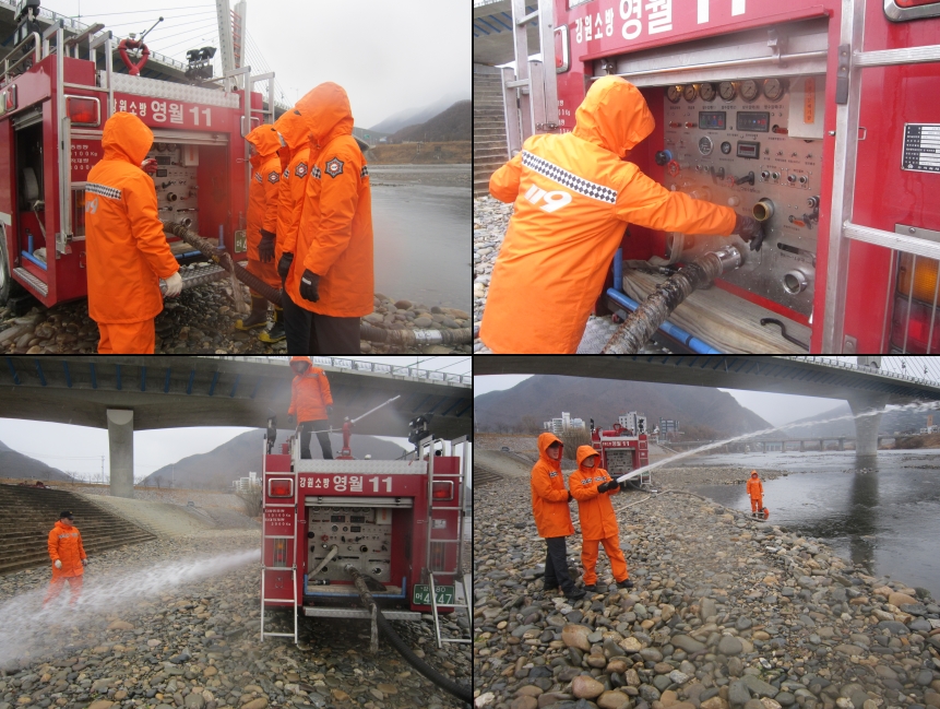 영월소방서(서장 김남백) 영월119안전센터에서는 빈틈없는 현장활동을 위해 자연수리를 점령하여 흡수조작훈련, 수중펌프 이용 방수 훈련을 실사하였습니다.