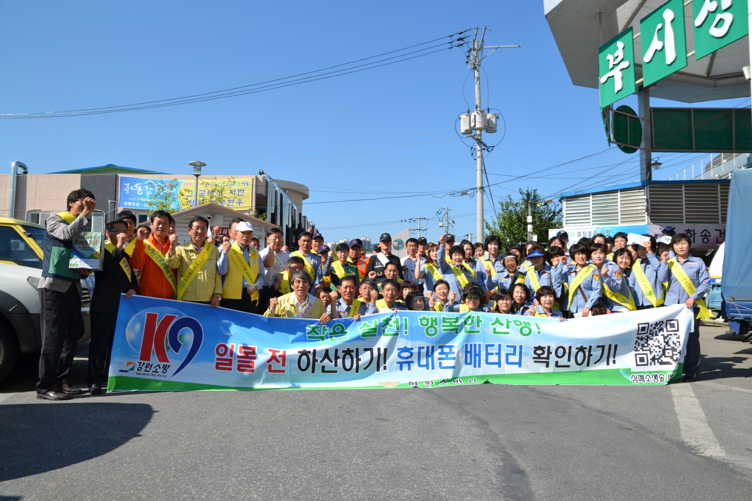 24일(월) 오전 10시 군청, 경찰서, 의소대 및 지역 NGO 단체 등이 참석한 가운데 재래시장, 터미널, 덕포민속장 등 다중이용시설에 대한 추석절 대비 유관기관 합동 화재예방, 산악안전사고 예방 등 안전문화확산 캠페인 활동을 펼치고 화재취약지구인 서부시장에 대한 소방통로확보 훈련을 실시했다.