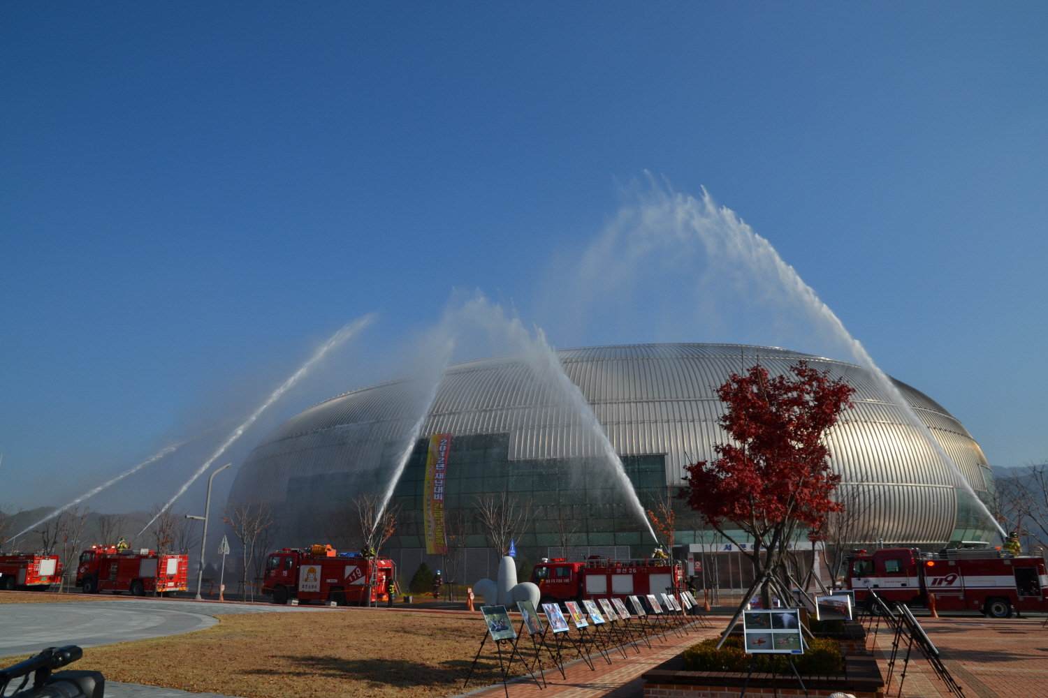 11. 1일(목) 오후 2시 영월스포츠파크 실내체육관에서 27개 유관기관·단체 457명이 참가하는 테러·화재 등 복합재난대비 긴급구조종합훈련을 실시하였습니다. 이번 훈련은 군민의 날 행사 중 정체불명의 테러단체에 의해 폭발과 화재가 발생한 상황을 가정, 유관기관별 명확한 역할분담과 임무수행으로 재난대응능력을 향상시키기 위한 목적으로 실시되었습니다.