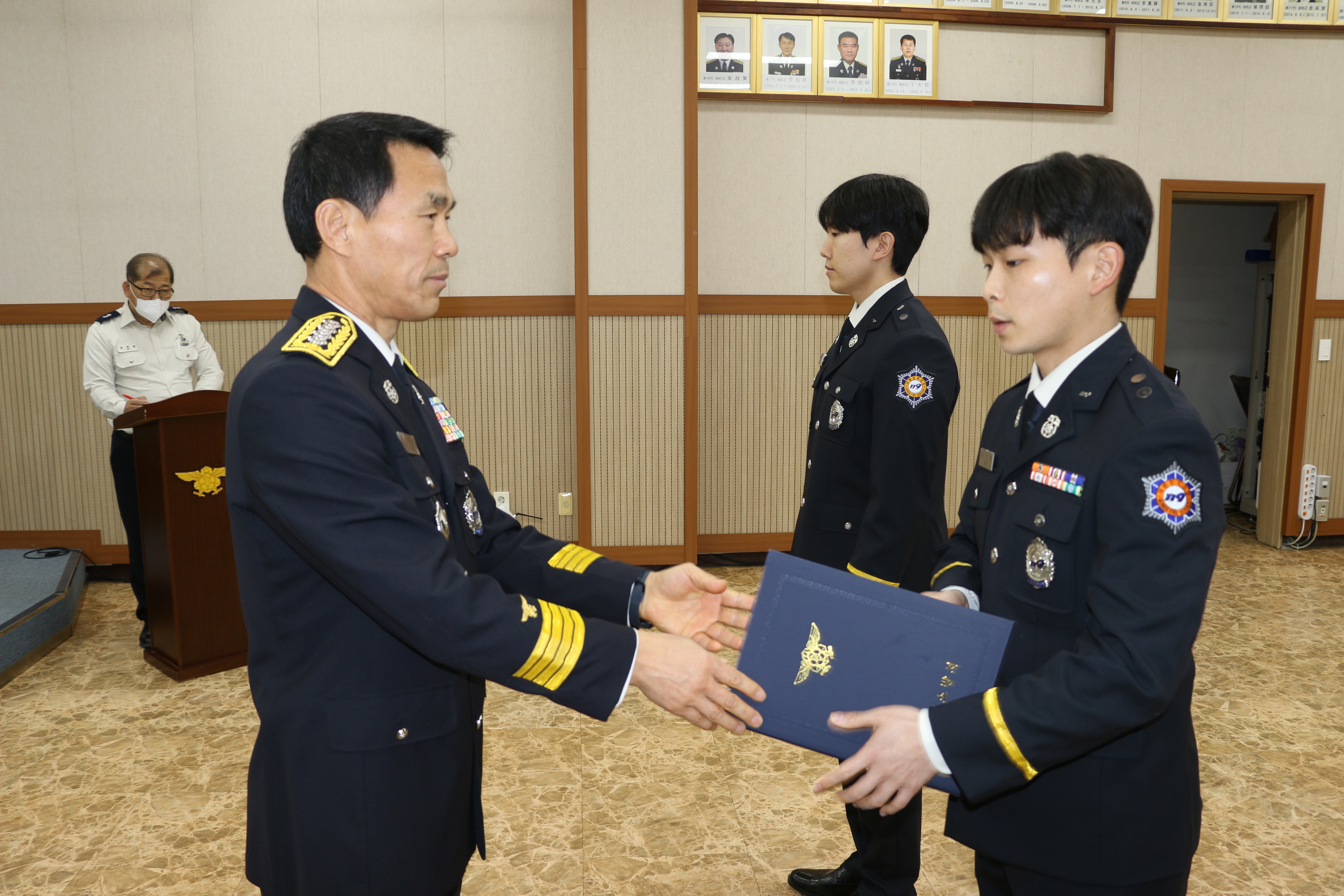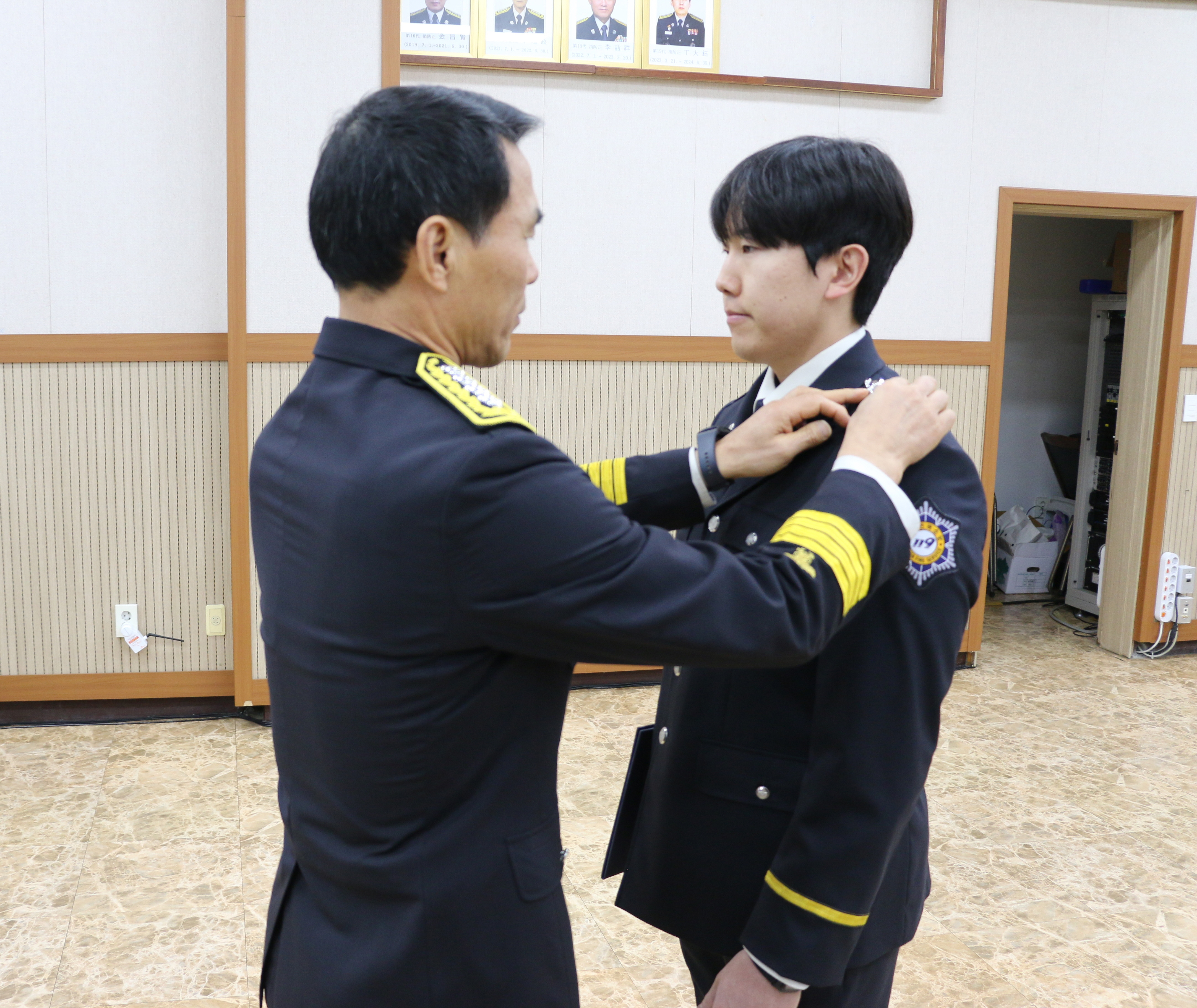 영월소방서는 본서 대회의실에서 소방장으로 승진한 ▲김찬영 소방공무원과 소방교로 승진한 ▲권순근 ▲이지훈 ▲양현호 소방공무원 근속승진자 4명에 대해 임용장 및 계급장 수여식을 개최했습니다.