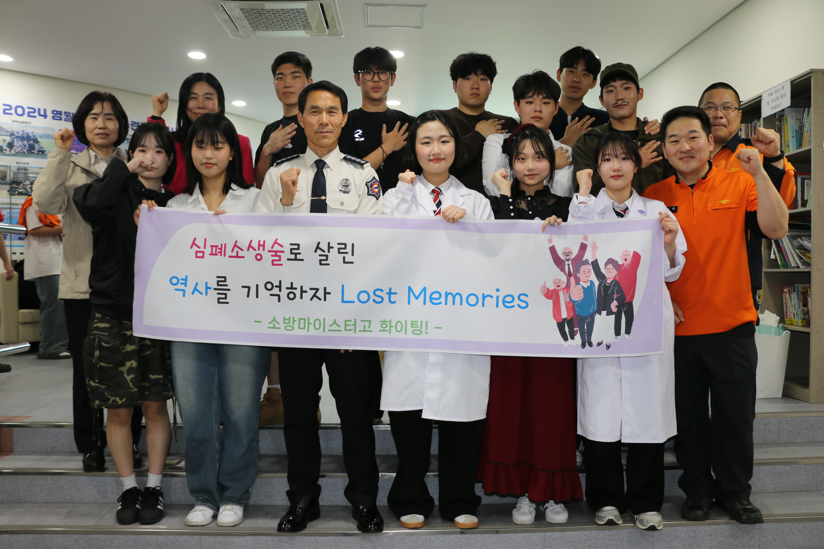 영월소방서는 18일 영월 청소년수련관에서 열린‘제7회 강원특별자치도 일반인 심폐소생술 경연대회’에서 영월소방 대표로 출전하는 참가팀(한국소방마이스터고 3학년 문희원, 이유선, 이수정, 최주혁, 정용민) ‘LOST MEMORIES’는 ‘심폐소생술로 만든 대한의 독립’이라는 주제로 심정지 상황의 긴박함과 소생이라는 감동을 표현해 심폐소생술의 중요성을 전달하는 퍼포먼스를 완벽하게 연출해 최우수상을 수상했습니다.