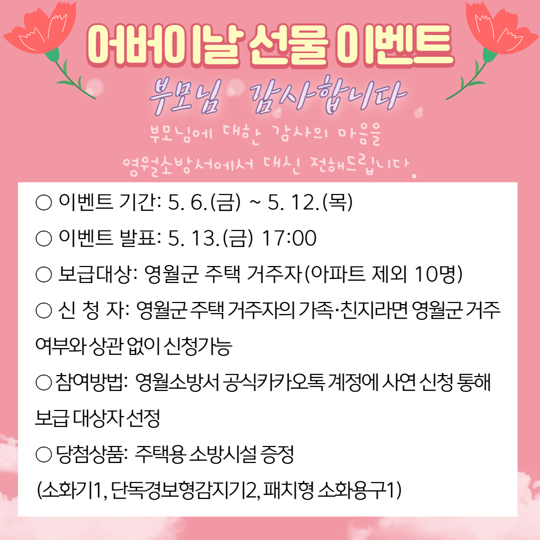영월소방서, 부모님 위한 '어버이날 이벤트'진행
