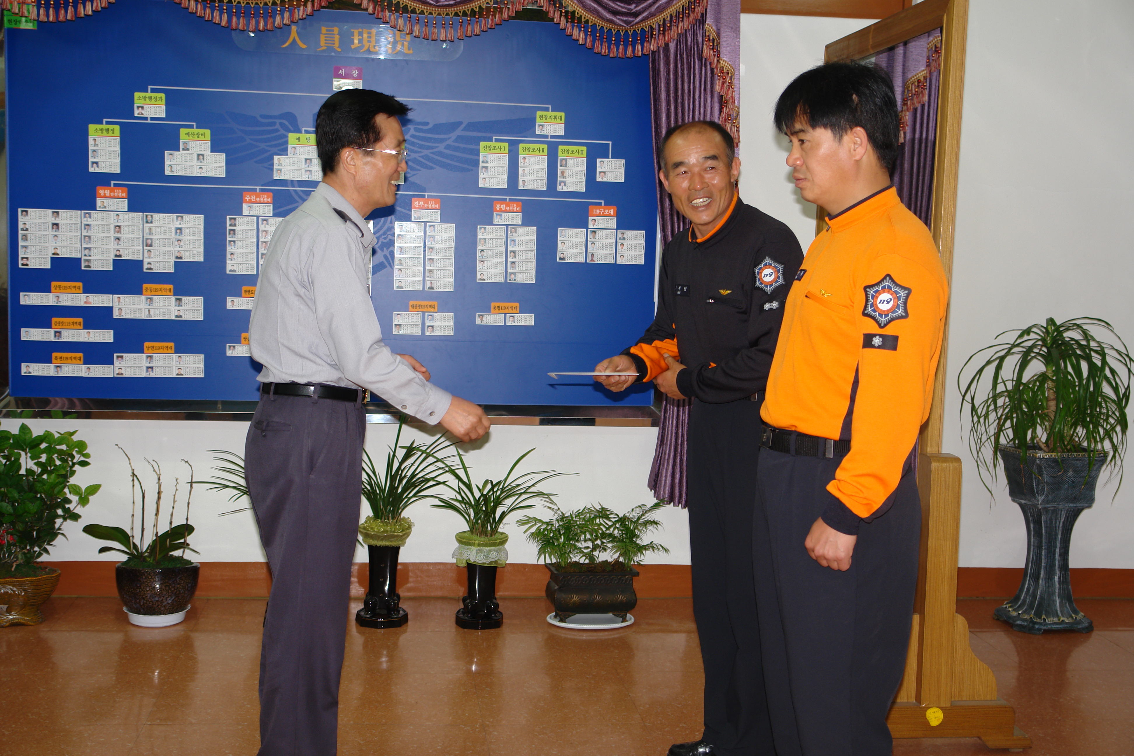 영월소방서장은 6일 서장실에서 오는 13-14일 태백에 위치하고 있는 강원소방학교에서 있을소방기술경연대회에 참가하는 직원들을 위하여 격려금을 전달하고 최선을 다하는 모습과 좋은 성과가 있기를 기대한다는 이야기를 전달하였다.
