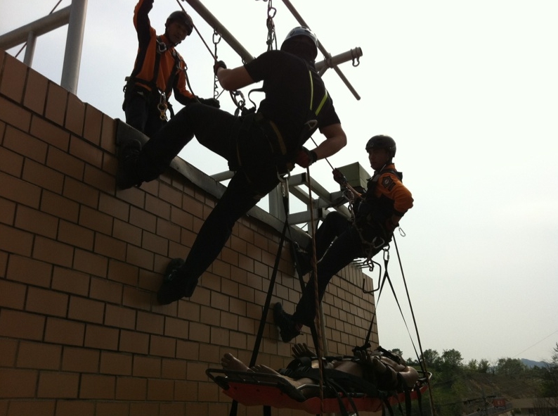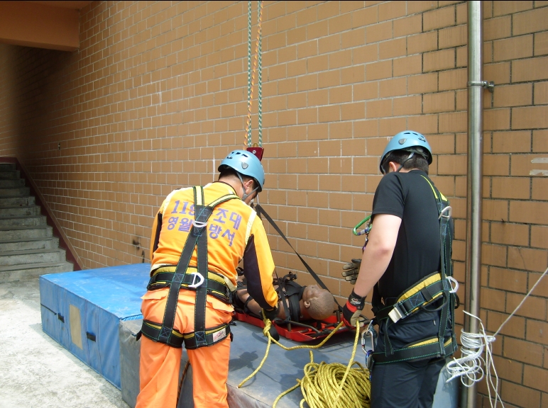 추락사고 대비 로프지지 및 하강훈련