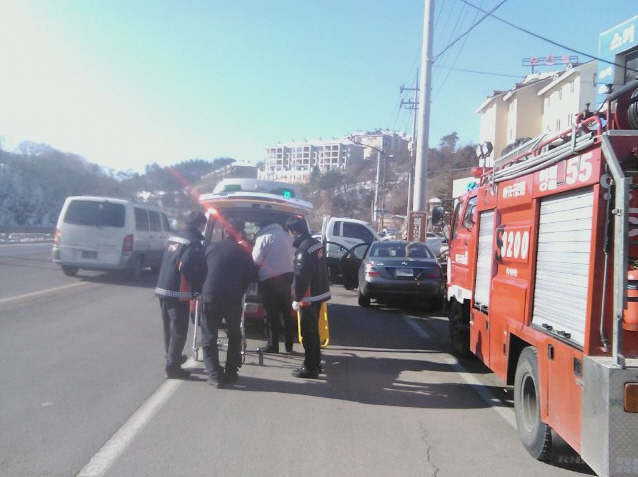 영월소방서(서장,김남백) 대관령119안전센터는 2012년 1월 6일(금) 대관령면 횡계리 도로상에서 발생한 교통사고 현장에 출동하여 요구조자 2명을 신속하고 안전하게 구조하여 강릉아산병원으로 응급이송 하였다.