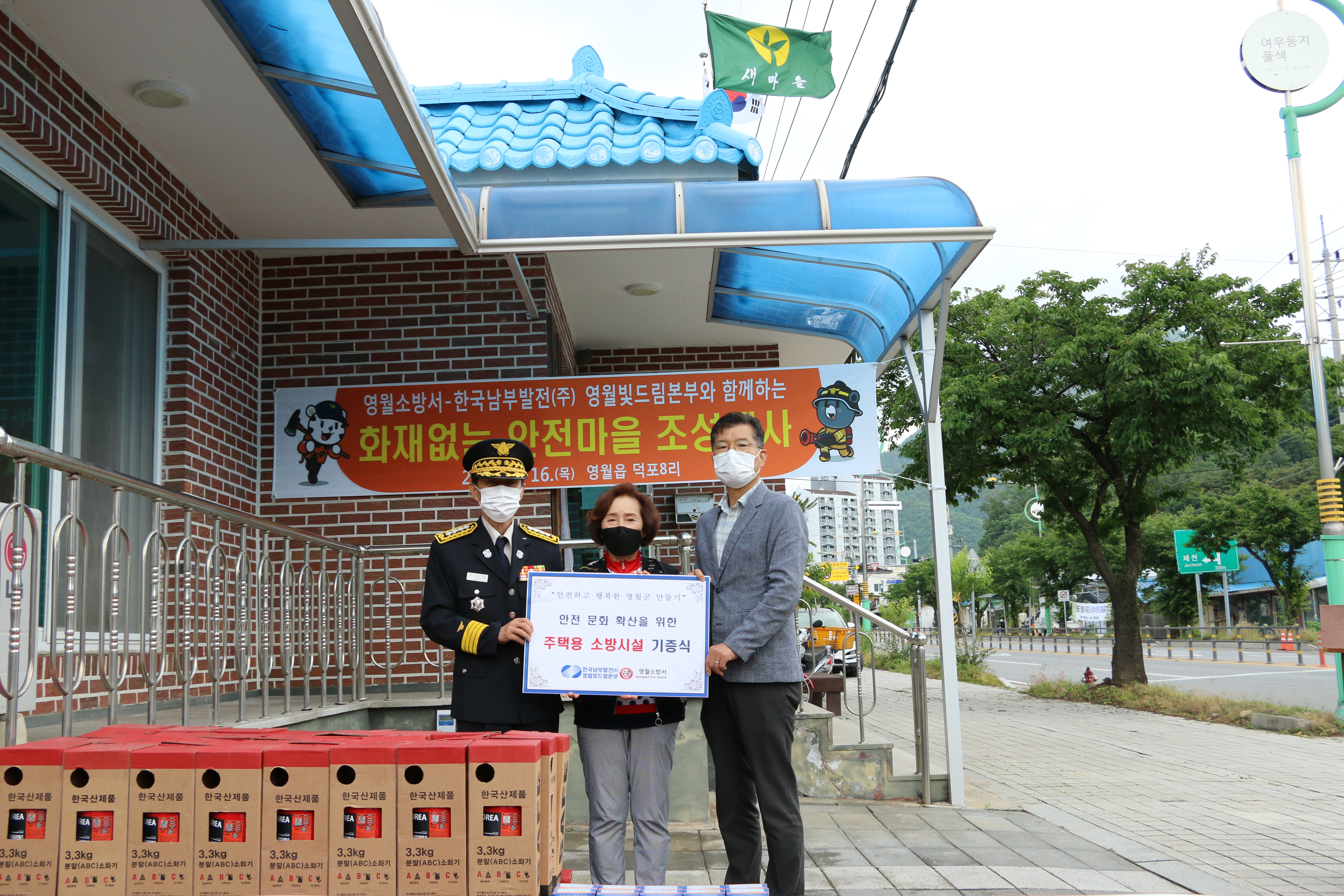 □ 특히, 한국남부발전(주) 영월 빛드림본부는 사회공헌활동의 일환으로 주택용소방시설(소화기 65점, 감지기 130점)을 마을에 기증했다.