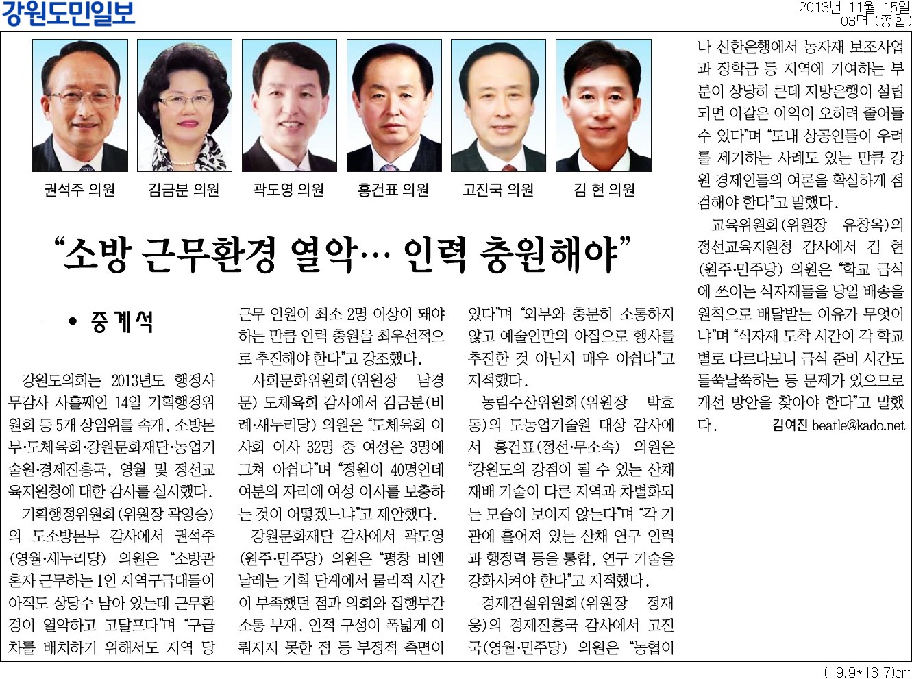 이번 강원도 의회 소방본부행정감사시 소방공직자들의