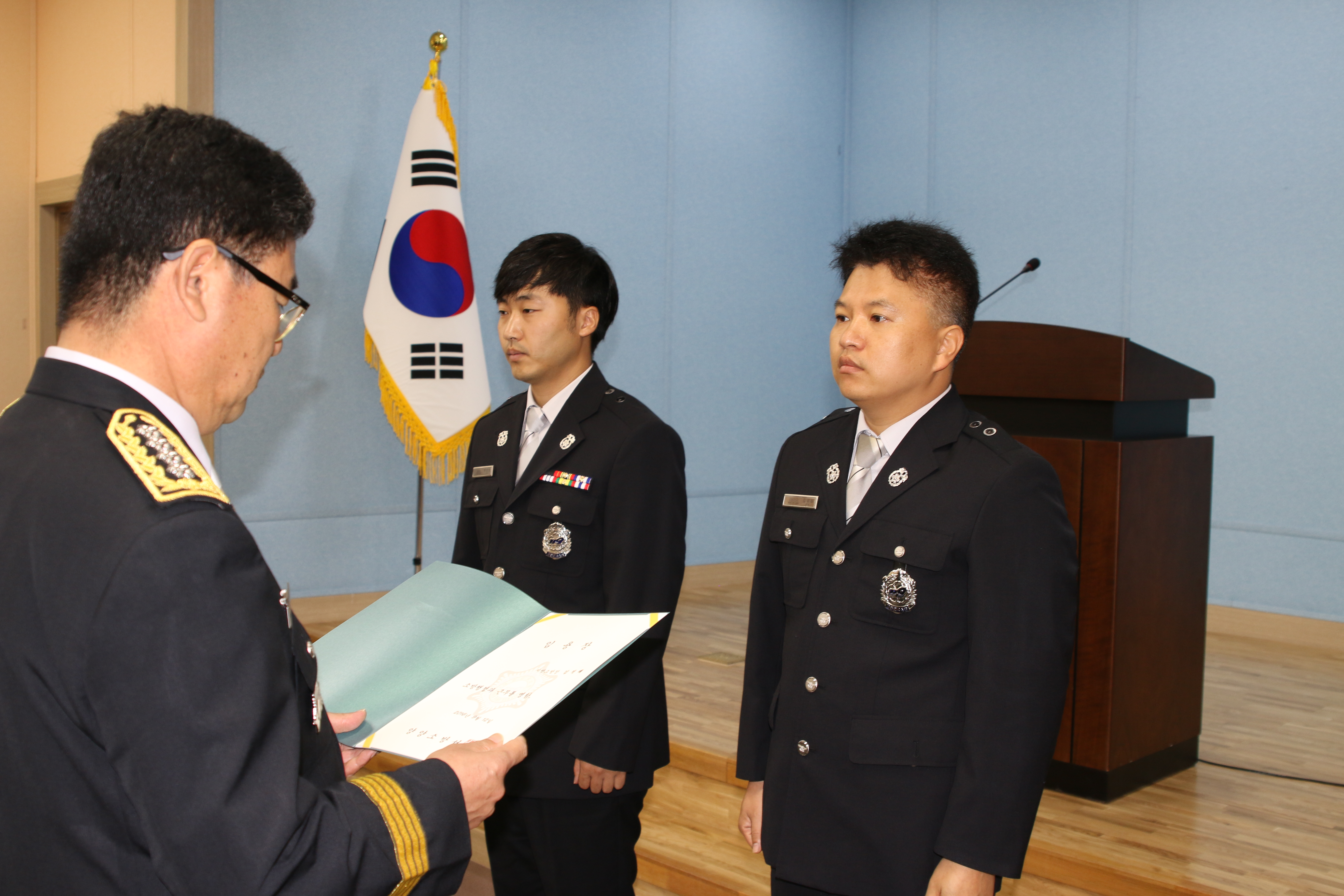 양양소방서(서장 이수남)는 12일(월) 오전 9시 진급자 신고 및 직장교육을 실시하여 인사자들에 대한 임용장 수여 및 직장교육을 진행했습니다.