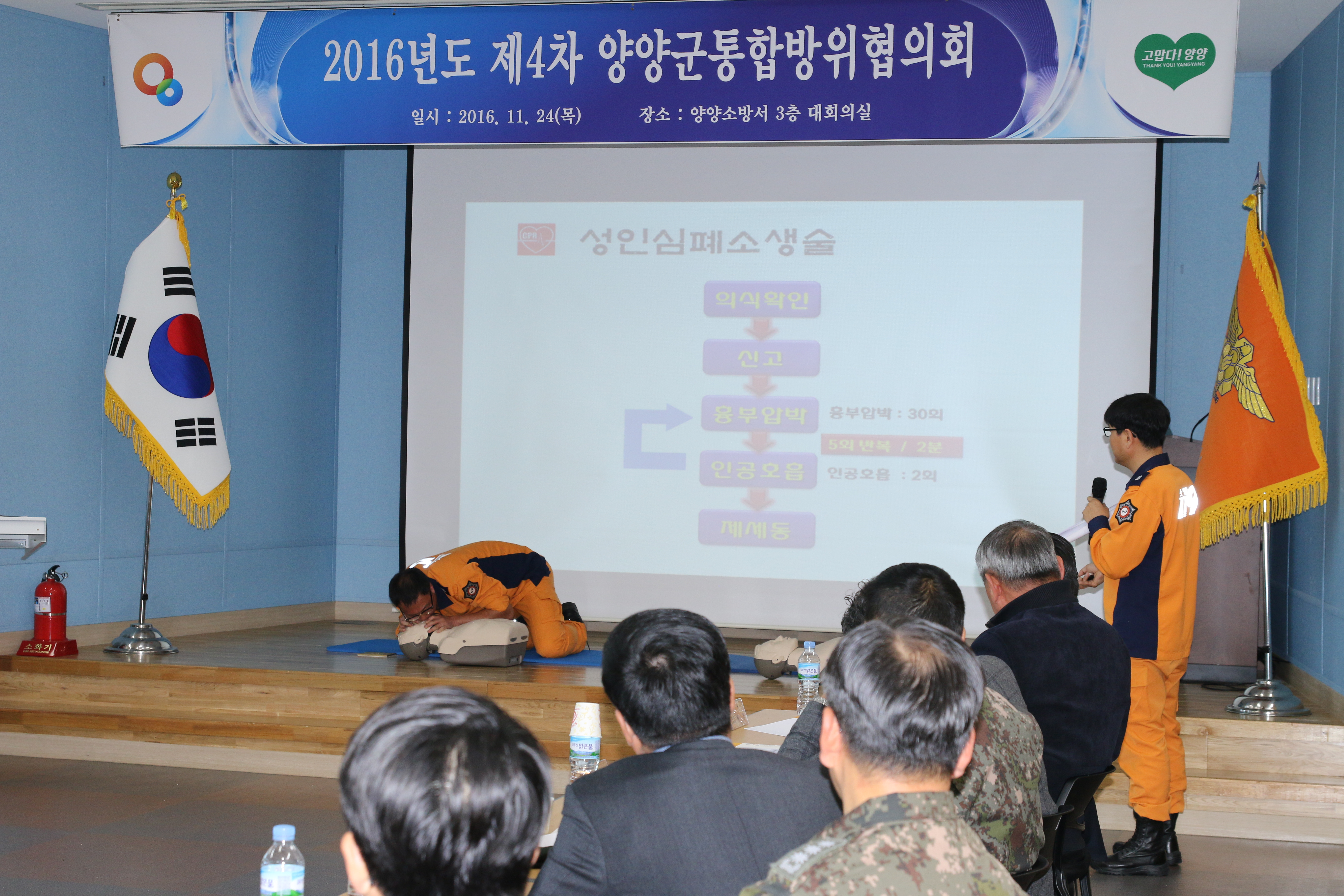 이번 회의는 통합방위태세 확립 주요성과를 보고하고 재해재난 위협에 대한 대책과 통합방위 발전방향에 대한 토론을 벌였으며, 위원을 대상으로 CPR(심폐소생술) 교육체험 및 화재예방 동영상을 시청하였다.