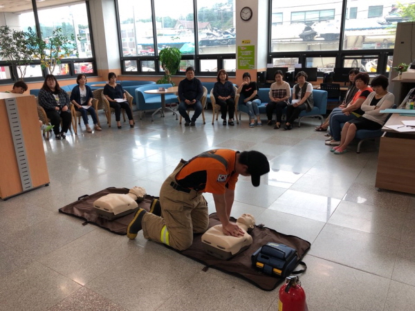 이날 훈련은 옥내소화전 등 소방시설 사용 숙지, 인명 구조와 구급ㆍ대피 요령, 심폐소생술 체험 등에 중점을 두고 진행됐다.