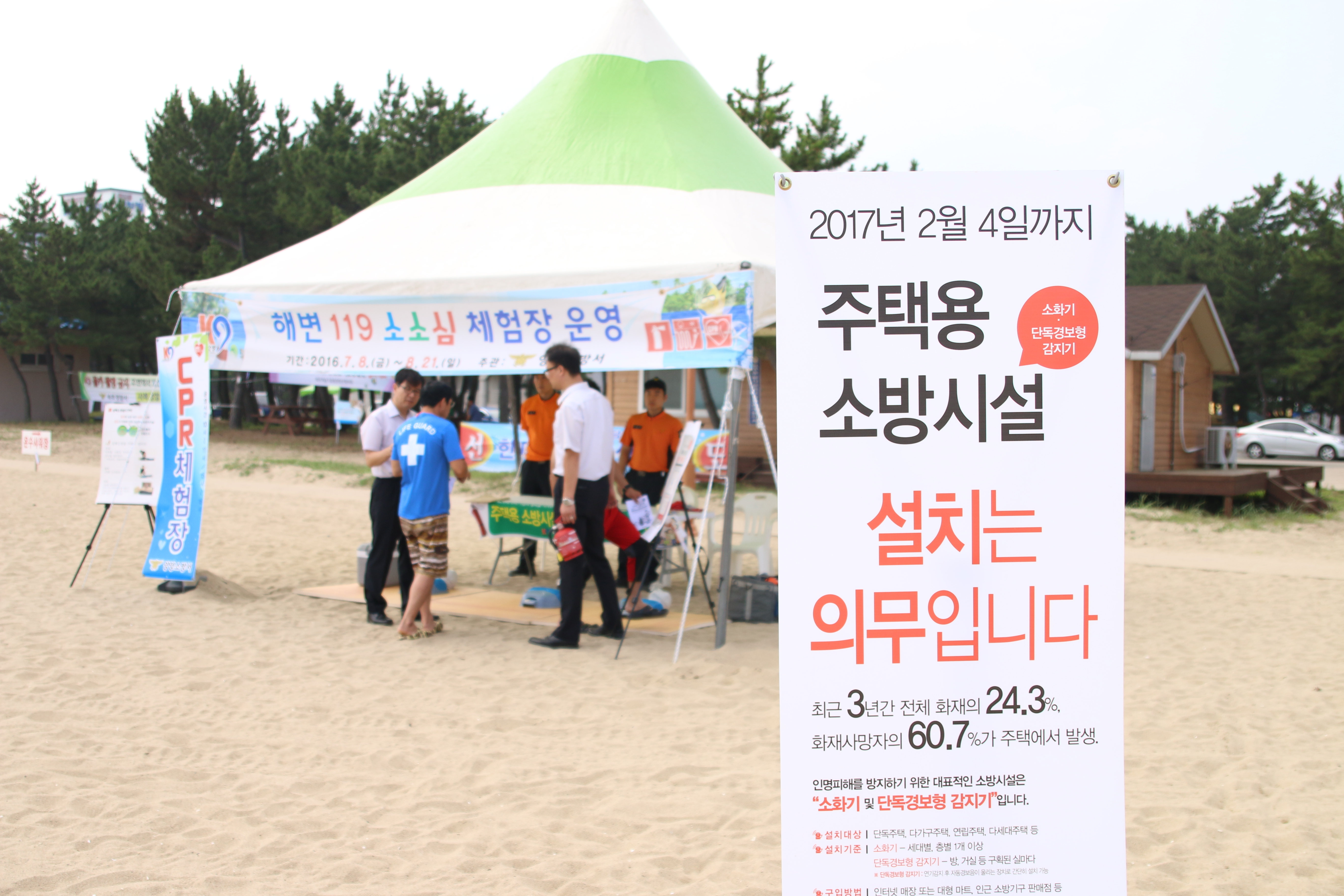 양양소방서(서장 이수남)는 지난 15일부터 운영중인 ‘낙산해변 CPR체험장’에 주택용소방시설 설치 홍보부스를 마련하여 지역주민과 피서객을 대상으로 주택용 소방시설설치 홍보에 구슬땀을 흘리고 있다.
