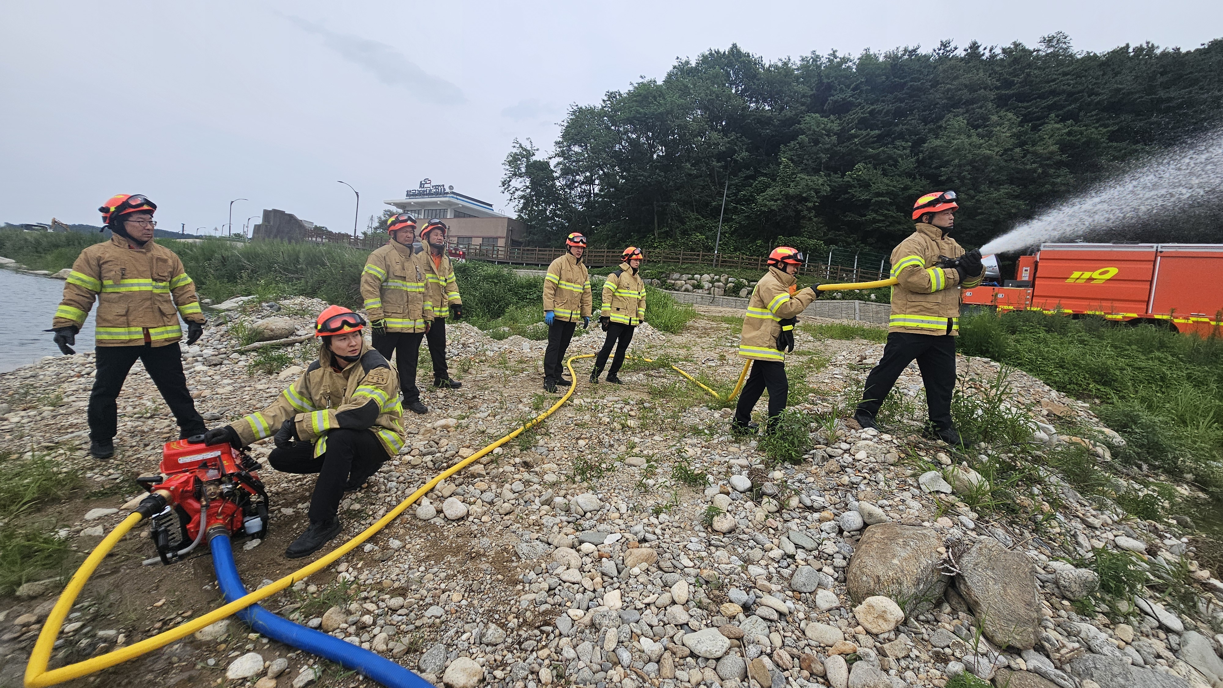수방장비 조작(가동)훈련은 동력 소방펌프ㆍ수중펌프 가동상태 점검, 연료 공급망 확인, 흡수망 파손ㆍ누수 여부 점검ㆍ교체, 수방장비를 활용한 배수 훈련 등 내용으로 진행됐다.